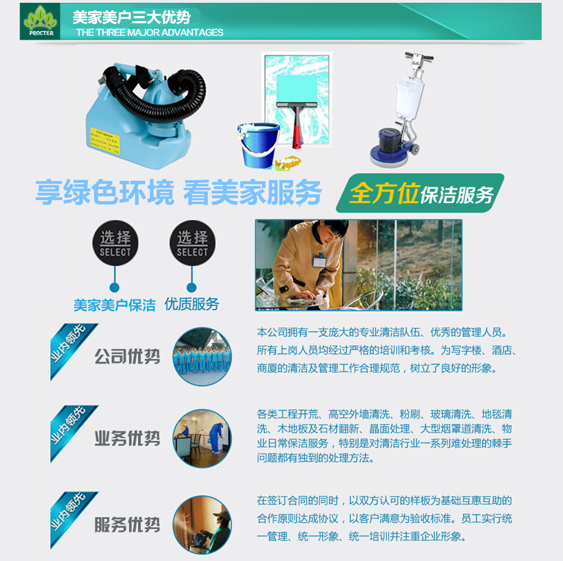 綿陽(yáng)市美家美戶家政有限公司成立于2004年,是一家專業(yè)從事家庭、企事業(yè)單位、賓館、酒店等保潔服務(wù)的大型服務(wù)公司,公司至今成立十一年來(lái)現(xiàn)有員工105名,管理人員16名,場(chǎng)地500平米。公司現(xiàn)網(wǎng)點(diǎn)有開元店、高新店、高水店、園藝店、三臺(tái)公司、江油公司、遂寧公司等多個(gè)服務(wù)網(wǎng)點(diǎn)。 公司自成立以來(lái),一直秉承“謀利于耕者,謀福于食者”的宗旨,以“服務(wù)全川,***業(yè)萬(wàn)人”為目標(biāo),堅(jiān)持“做一家客戶,樹一個(gè)口碑;做一個(gè)行業(yè),樹一個(gè)品牌”的服務(wù)理念,發(fā)揚(yáng)……
